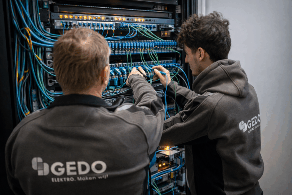 Onze ervaring in telecommunicatie en IT maakt het verschil. We integreren glasvezel naadloos in het totaalontwerp, samen met alle andere elektrotechnische voorzieningen. Geen losse kabels of latere aanpassingen, maar een slim en doordacht netwerk dat meteen goed zit.